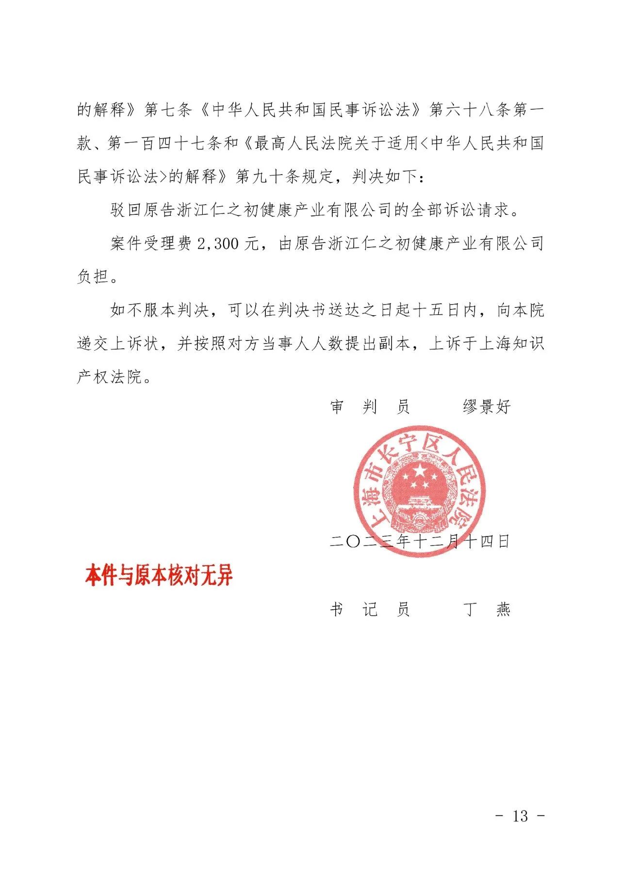 成都辉知胜诉佳讯 | “仁之初健康”著作权及不正当竞争纠纷案,法院:驳回全部诉讼请求!